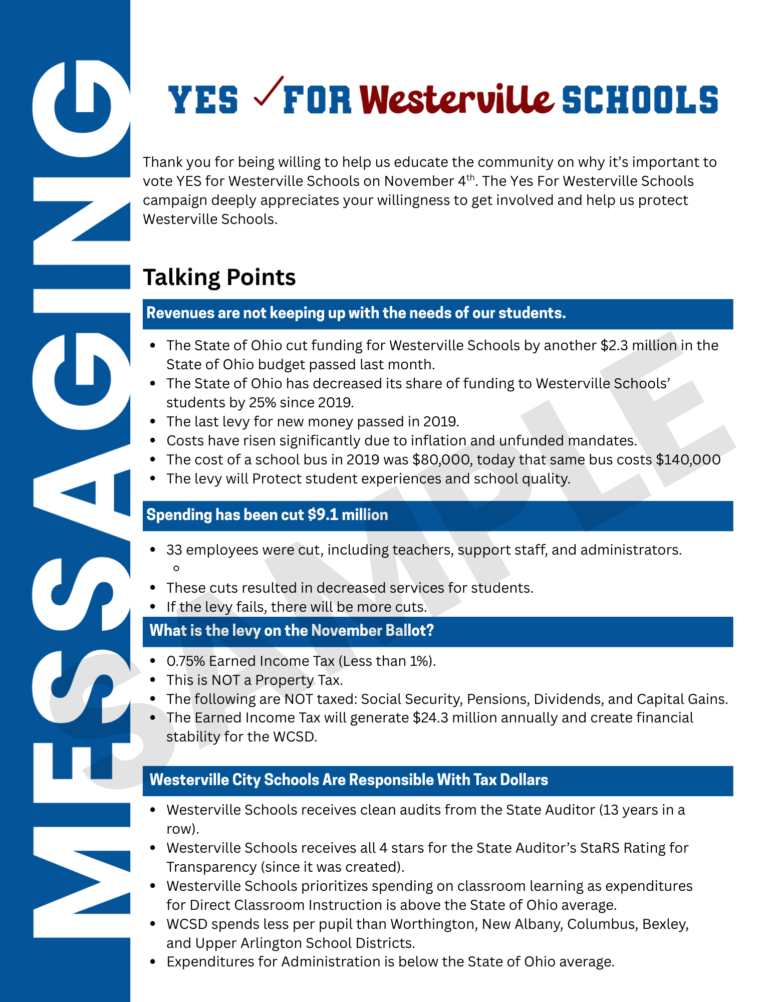 The FIRE team supported the Yes For Westerville Schools campaign from start to finish, contributing to the decisive passage of a 0.75% Earned Income Tax for Westerville City Schools. Through strategic rebranding, clear and compelling messaging, and robust Get Out the Vote efforts, we were deeply embedded in every step of a winning campaign.